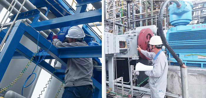 圖 / 津摯環(huán)保工程師現(xiàn)場調(diào)整PSA項目設(shè)備