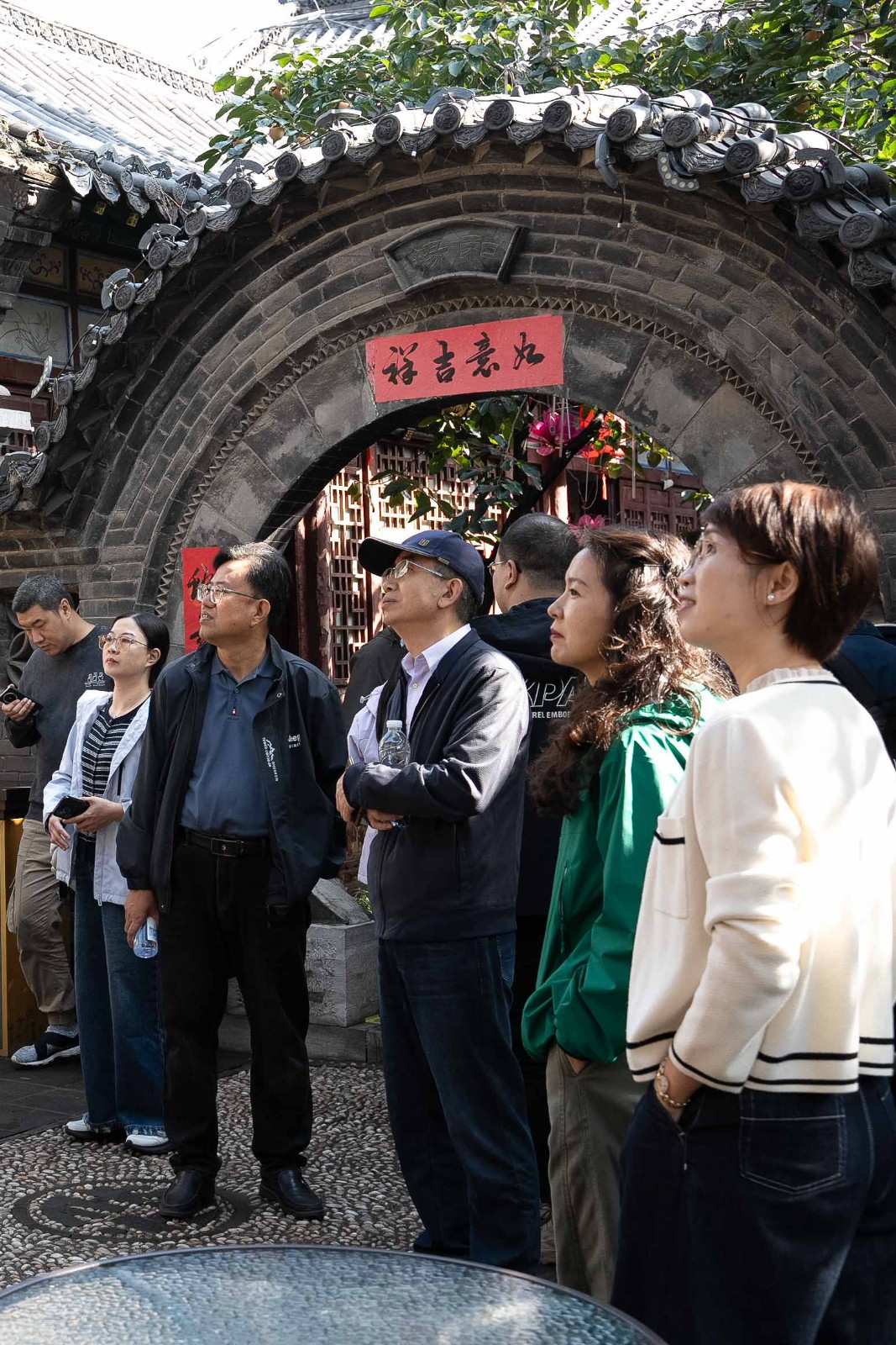 行程首日上午,所有人抵達淄博周村古商城。在導游的講解下,大家漫步于“大街”、“銀子市街”,觀賞明清票號展館、大染坊、狀元府,沉浸式體驗“今日無稅”的游行表演。走在青石板路上,仿佛穿越到“旱碼頭”的繁華年代,能感受到厚道魯商的樸實風貌。在游覽過程中,人群絡繹不絕,大家拍照打卡留念,購買特色產品,歡聲笑語不斷。